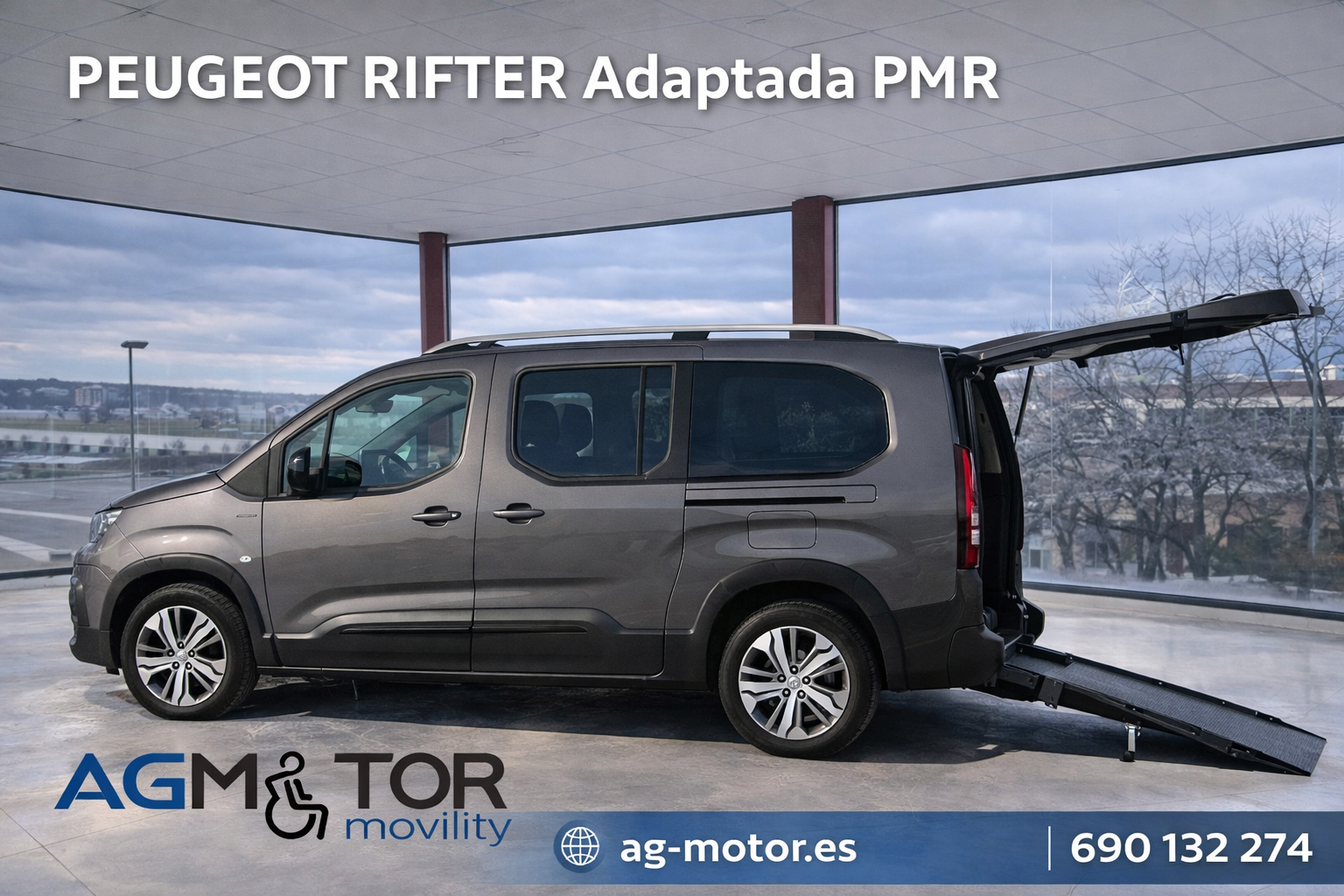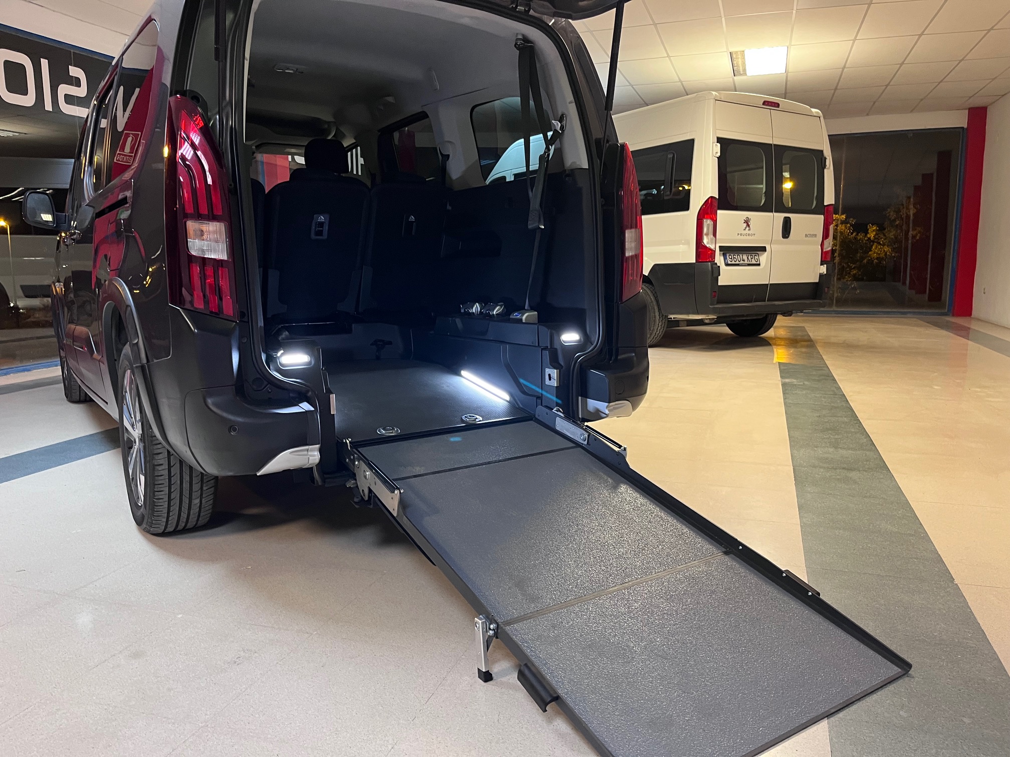 Peugeot Rifter GT Line Long adaptada PMR, especialmente adaptada para personas con movilidad reducida. ideal como coche adaptado para silla de ruedas, turismo accesible o vehículo adaptado para transporte de personas con discapacidad. además este vehículo permite el uso de las 5 plazas habituales y al mismo tiempo que suma la plaza para la persona en silla de ruedas, haciendo un total de 6 plazas.