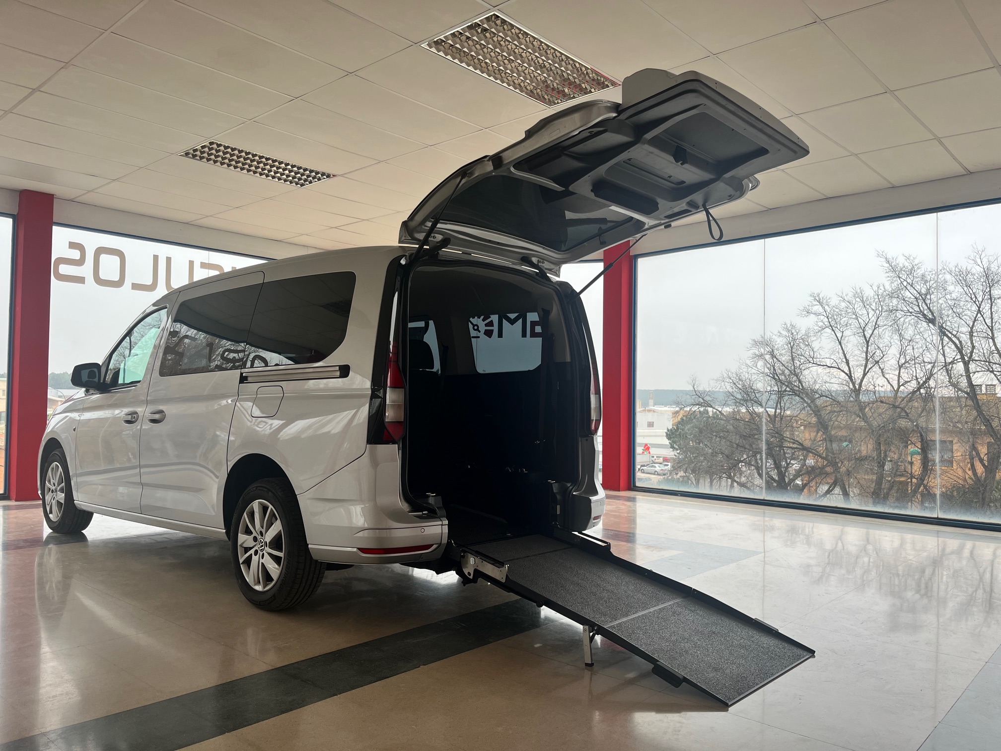 volkswagen caddy maxi 2.0 tdi de 102 cv, especialmente adaptada para personas con movilidad reducida. ideal como coche adaptado para silla de ruedas, turismo accesible o vehículo adaptado para transporte de personas con discapacidad. además este vehículo permite el uso de las 5 plazas habituales y al mismo tiempo que suma la plaza para la persona en silla de ruedas, haciendo un total de 6 plazas.