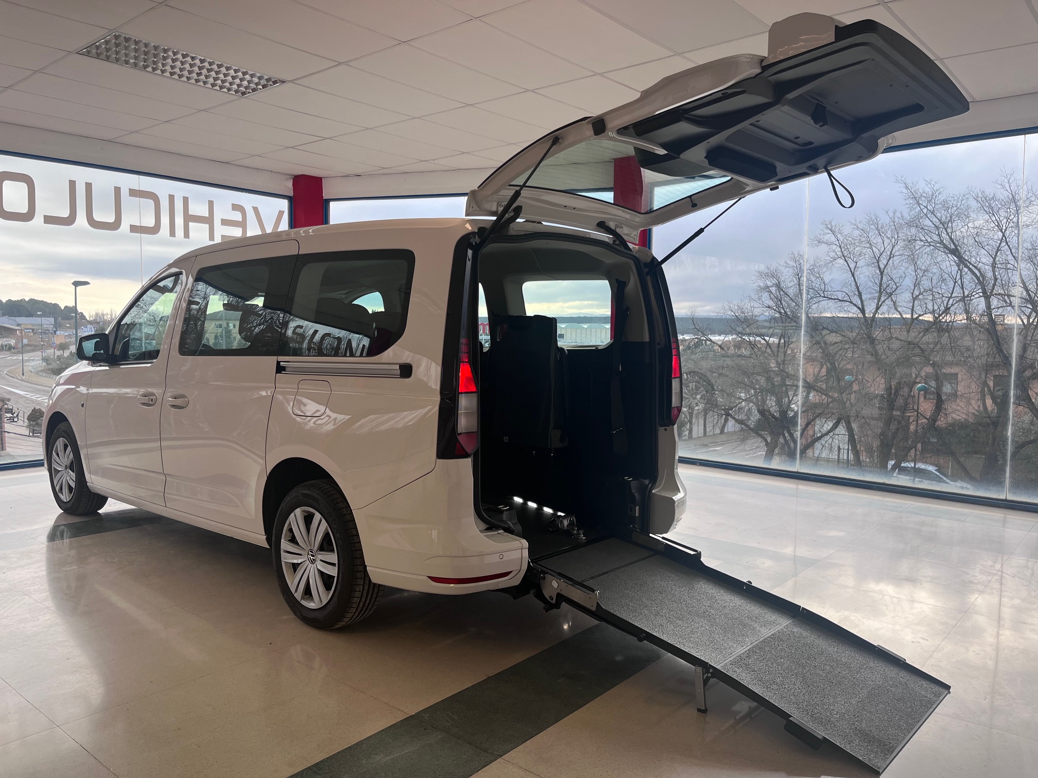 AG MOTOR MOVILIDAD S.L servicio multimarca con amplia experiencia en el sector. Todos nuestros vehículos se entregan completamente revisados, con el mantenimiento anual realizado, 12 meses de garantía comercial ampliable a 24 meses y transferencia incluida. Si lo desea le buscamos la financiación adaptada a sus necesidades hasta 10 años, sin entrada. Posibilidad de entrega del vehículo a su domicilio o entrega gratuita en la estación AVE de Zaragoza. Llámenos para solicitar disponibilidad y concretar cita. Volkswagen Caddy Maxi adaptada pmr volkswagen caddy maxi 2.0 tdi de 122 cv cambio automático DSG especialmente adaptada para personas con movilidad reducida. ideal como coche adaptado para silla de ruedas, turismo accesible o vehículo adaptado para transporte de personas con discapacidad. además este vehículo permite el uso de las 5 plazas habituales y al mismo tiempo que suma la plaza para la persona en silla de ruedas, banquetas laterales haciendo un total de 7 plazas. Precio venta publico 42.211€ +4% IVA 1.689€ = 43.900€ aplicado reducción de IVA al 4%. Adaptación silla de ruedas pmr nueva a estrenar Asientos laterales , homologada 7 plazas